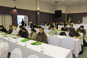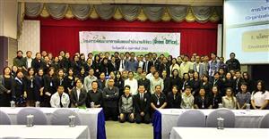จากนั้นเข้าสู่การบรรยายให้ความรู้เกี่ยวกับการพัฒนาอาคารต้นแบบสำนักงานสีเขียว(Green office) โดย รองศาสตราจารย์สยาม อรุณศรีมรกต รองคณบดีฝ่ายมาตรฐานคุณภาพสิ่งแวดล้อมและวิเทศสัมพันธ์ มหาวิทยาลัยมหิดล ณ ห้องประชุมศูนย์การศึกษาและฝึกอบรมนานาชาติ มหาวิทยาลัยแม่โจ้