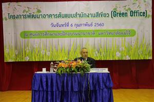 เมื่อวันจันทร์ที่ 6 กุมภาพันธ์ 2560 เวลา 8.30 น. ได้มีการเปิดโครงการพัฒนาอาคารต้นแบบสำนักงานสีเขียว(Green office) กล่าวต้อนรับ โดย นายประคอง ยอดหอม ผู้อำนวยการกองอาคารและสถานที่ และได้รับได้รับเกียรติจาก อาจารย์อภิชาติ สวนคำกอง รองอธิการบดี กล่าวเปิดโครงการในครั้งนี้
