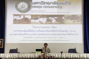 เมื่อวันจันทร์ที่ 24 เมษายน 2560 เวลา 13.30 น. - 16.30 น. บุคลากรงานประชุม ได้เข้าร่วมโครงการเสวนา "มหาวิทยาลัยแม่โจ้กับการเป็นมหาวิทยาลัยในกำกับของรัฐ" เกี่ยวกับ พ.ร.บ. มหาวิทยาลัยแม่โจ้ พ.ศ. 2560 และทิศทางการบริหารงานของมหาวิทยาลันในกำกับ ณ ห้องข้าวหอมมะลิ อาคารเฉลิมพระเกียรติสมเด็จพระเทพรัตนราชสุดาฯ