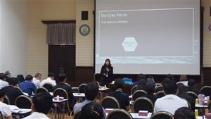 ผู้อำนวยการกองกลาง และหัวหน้างานในกองกลาง เข้าร่วมโครงการสัมนาเชิงปฏิบัติการ เรื่อง "การทบทวนแผนกลยุทธ์และจัดทำแผนปฏิบัติการสำนักงานอธิการบดี ประจำปีงบประมาณ พ.ศ. 2561 เมื่อวันที่ 27 กันยายน 2560 ณ ห้องคาวบอยเธียเตอร์ อาคารพัฒนาวิสัยทัศน์ ซึ่งมีผู้แทนของหน่วยงานภายในสำนักงานอธิการบดีเข้าร่วม จำนวน 80 คน โดยการสัมมนาครั้งนี้จัดขึ้นเพื่อให้ผู้เข้าร่วมสัมมนามีความเข้าใจยุทธศาสตร์การพัฒนาของสำนักงานอธิการบดี และร่วมกันทบทวนวิสัยทัศน์ พันธกิจ ประเด็นยุทธศาสตร์ รวมถึง กำหนดเป้าประสงค์ ตัวชี้วัด และโครงการนำร่องร่วมกัน