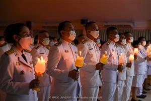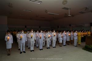 วันอังคารที่ 13 ตุลาคม 2563 อาจารย์ ดร. สุดเขต สกุลทอง รักษาการแทนผู้ช่วยอธิการบดี นำผู้แทนบุคลากรมหาวิทยาลัยแม่โจ้ เข้าร่วมพิธีจุดเทียนเพื่อน้อมรำลึกในพระมหากรุณาธิคุณพระบาทสมเด็จพระบรมชนกาธิเบศร มหาภูมิพลอดุลยเดชมหาราช บรมนาถบพิตร โดยมี นายศิวะ ธมิกานนท์ นายอำเภอสันทราย เป็นประธานในพิธี พร้อมด้วยหัวหน้าส่วนราชการ หน่วยงานรัฐวิสาหกิจ สมาชิกกิ่งกาชาดอำเภอสันทราย นายกองค์กรปกครองส่วนท้องถิ่น กำนัน ผู้ใหญ่บ้าน และประชาชนทุกหมู่เหล่าเข้าร่วมพิธีโดยพร้อมเพรียงกัน ณ ที่ว่าการอำเภอสันทราย จังหวัดเชียงใหม่