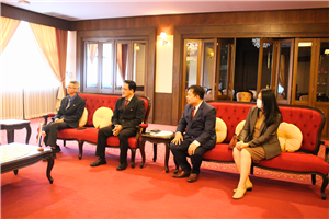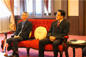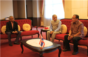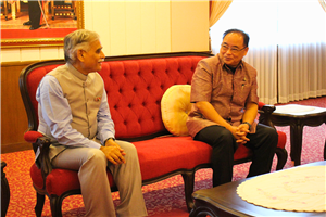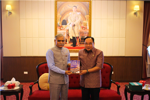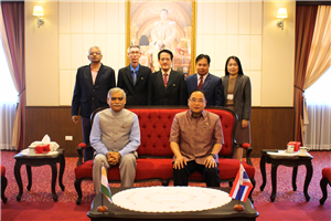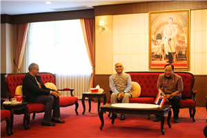 วันพฤหัสบดีที่ 9 กุมภาพันธ์ 2566 รองศาสตราจารย์ ดร.วีระพล ทองมา อธิการบดีมหาวิทยาลัยแม่โจ้ พร้อมด้วยผู้บริหารมหาวิทยาลัยแม่โจ้ ให้การต้อนรับ Mr. Krishna Chaithanya กงสุลอินเดีย ประจำจังหวัดเชียงใหม่ ในโอกาสเข้าพบหารือความร่วมมือระหว่างประเทศและมอบหนังสือแก่สำนักหอสมุด ณ ห้องรับรองอินทนิล สำนักงานมหาวิทยาลัย มหาวิทยาลัยแม่โจ้