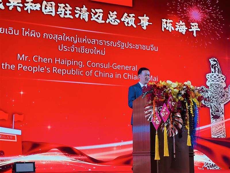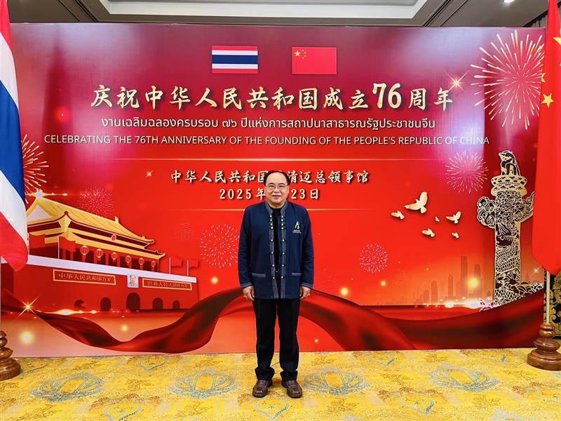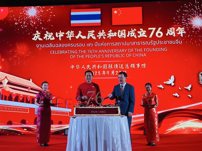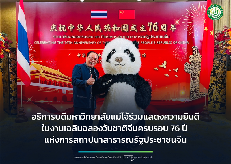 วันอังคารที่ 23 กันยายน 2568 รองศาสตราจารย์ ดร.วีระพล ทองมา อธิการบดีมหาวิทยาลัยแม่โจ้ ร่วมแสดงความยินดีเนื่องใน “งานเฉลิมฉลองวันชาติจีนครบรอบ 76 ปี แห่งการสถาปนาสาธารณรัฐประชาชนจีน” ซึ่งจัดโดย สถานเอกอัครราชทูตสาธารณรัฐประชาชนจีนประจำประเทศไทย เชียงใหม่ โดยมี นาย เฉิน ไห่ผิง กงสุลใหญ่แห่งสาธารณรัฐประชาชนจีนประจำเชียงใหม่ ให้การต้อนรับ ณ โรงแรมแชงกรี – ลา เชียงใหม่