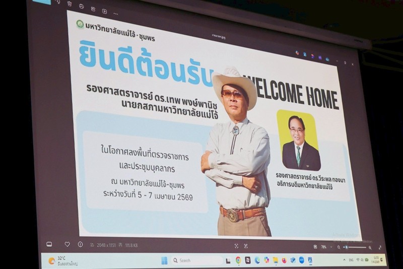 ต่อมาในวันที่ 7 เมษายน 2569 ประชุมพบปะบุคลากร โดยนายกสภามหาวิทยาลัยและอธิการบดีได้มอบนโยบายการพัฒนามหาวิทยาลัย พร้อมทั้งให้ข้อเสนอแนะ ทั้งทางด้านการปฏิบัติงาน ด้านการพัฒนาหลักสูตรการเรียนการสอน ตลอดเปิดเวทีพูดคุยแลกเปลี่ยนความคิดเห็น อันเป็นประโยชน์ต่อการขับเคลื่อนการพัฒนามหาวิทยาลัยแม่โจ้-ชุมพรให้ก้าวทันต่อการเปลี่ยนแปลง