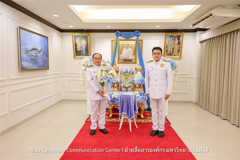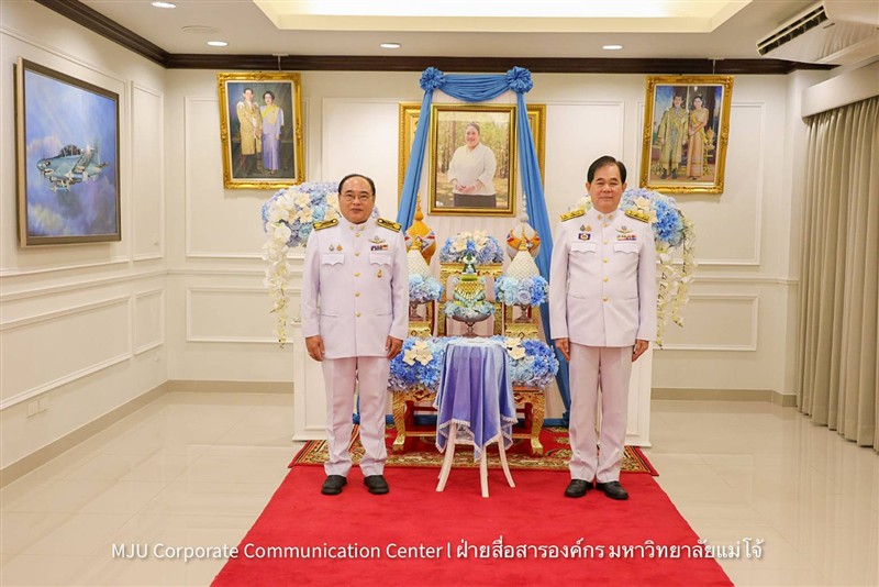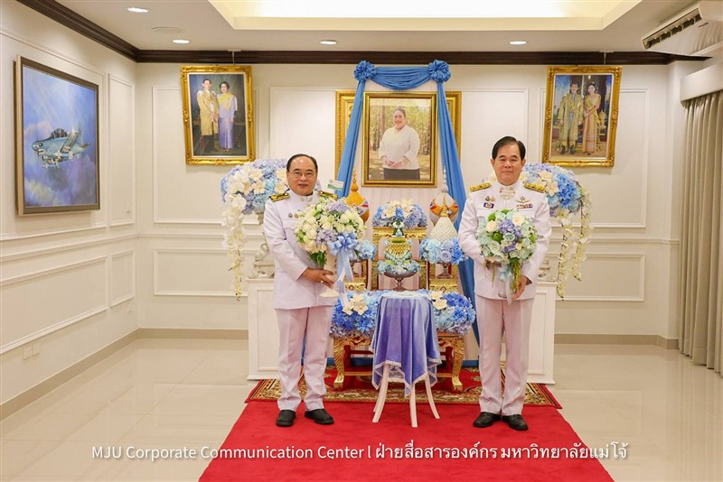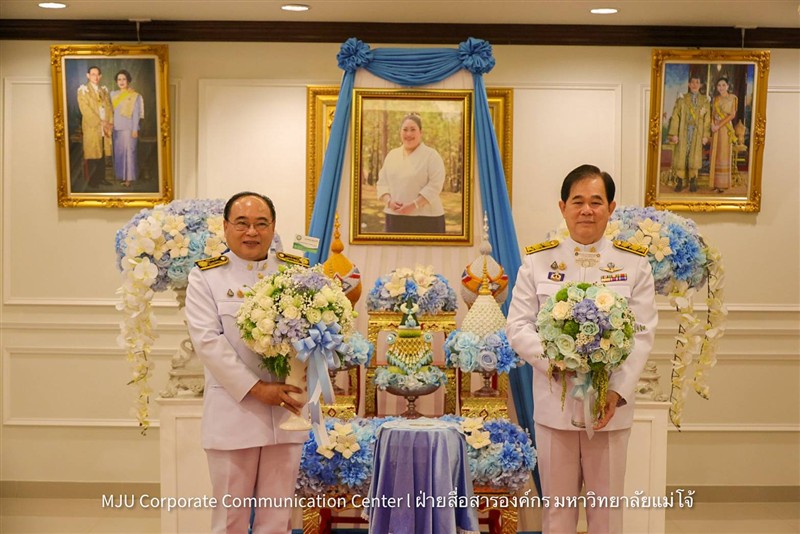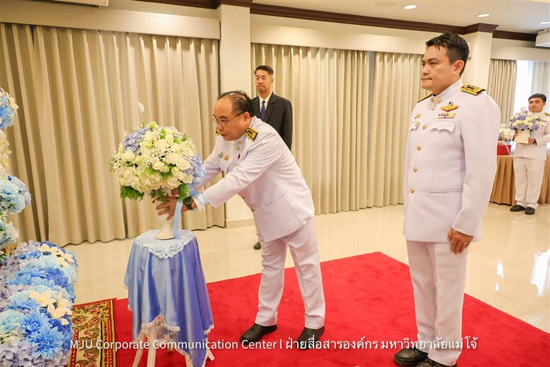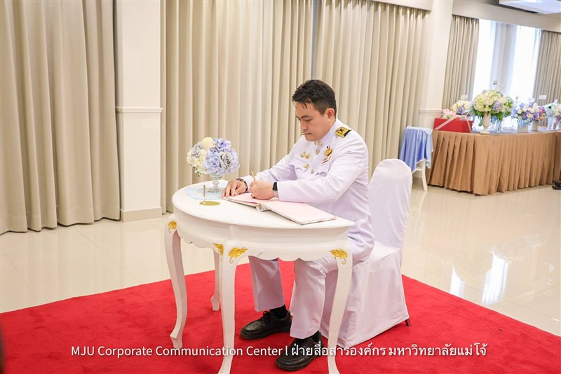 วันพุธที่ 8 ตุลาคม พ.ศ. 2568 รองศาสตราจารย์ ดร.วีระพล ทองมา อธิการบดีมหาวิทยาลัยแม่โจ้ พร้อมด้วย ผู้ช่วยศาสตราจารย์. ว่าที่ รอ.ดร.จิระชัย ยมเกิด ผู้ช่วยอธิการบดี เข้าร่วม พิธีถวายพระพรเนื่องในโอกาสวันคล้ายวันประสูติของพระเจ้าวรวงศ์เธอ พระองค์เจ้าสิริภาจุฑาภรณ์ และลงนามถวายพระพร เพื่อแสดงออกถึงความจงรักภักดี และน้อมสำนึกในพระกรุณาธิคุณอย่างหาที่สุดมิได้ ที่ทรงมุ่งมั่นปฏิบัติพระกรณียกิจ น้อยใหญ่ทั้งปวง อันก่อให้เกิดประโยชน์สุขแก่ประชาชนและประเทศชาติอย่างต่อเนื่อง ณ ห้องรับรอง ห้องประชุมอัลบารรอส กองบิน 41 จังหวัดเชียงใหม่
